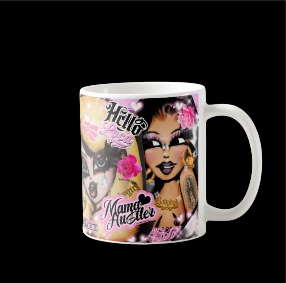 The official Ms Krazie "Homegirls" official fan 11oz coffee mug. Colorful mug featuring original artwork drawn by Ms Krazie. Cute gift for any loca!